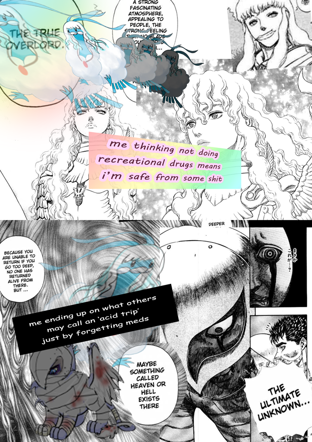 She doesn't really care about that shit you see, she's reading Berserk for the